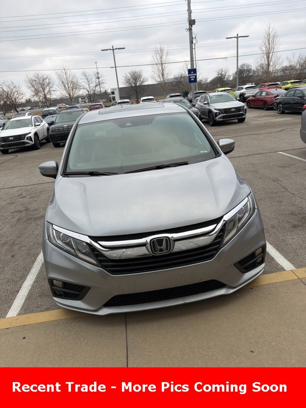 This Odyssey is well equipped with 18" Alloy wheels, 3.61 Axle Ratio, 3rd row seats: split-bench, 4-Wheel Disc Brakes, 7 Speakers, A/V remote: CabinControl, ABS brakes, Air Conditioning, AM/FM radio: SiriusXM, Anti-whiplash front head restraints, Apple CarPlay/Android Auto, Auto High-beam Headlights, Auto-dimming Rear-View mirror, Automatic temperature control, Blind Spot Information (BSI) System warning, Brake assist, Color Match Body Molding, Delay-off headlights, Driver door bin, Driver vanity mirror, Driver's Seat Mounted Armrest, Dual front impact airbags, Dual front side impact airbags, Electronic Stability Control, Exterior Parking Camera Rear, Forward collision: Collision Mitigation Braking System (CMBS) + FCW mitigation, Four wheel independent suspension, Front anti-roll bar, Front Bucket Seats, Front dual zone A/C, Front fog lights, Front reading lights, Fully automatic headlights, Garage door transmitter: HomeLink, Heated door mirrors, Heated Front Bucket Seats, Heated front seats, Illuminated entry, Knee airbag, Lane departure: Lane Keeping Assist System (LKAS) active, Leather Seat Trim, Leather steering wheel, Low tire pressure warning, Memory seat, Occupant sensing airbag, Outside temperature display, Overhead airbag, Overhead console, Panic alarm, Passenger door bin, Passenger seat mounted armrest, Passenger vanity mirror, Power door mirrors, Power driver seat, Power Liftgate, Power moonroof, Power passenger seat, Power steering, Power windows, Radio data system, Radio: 160-Watt AM/FM/HD/SiriusXM Audio System, Rear air conditioning, Rear anti-roll bar, Rear reading lights, Rear seat center armrest, Rear window defroster, Rear window wiper, Reclining 3rd row seat, Remote keyless entry, Security system, Speed control, Speed-sensing steering, Speed-Sensitive Wipers, Split folding rear seat, Spoiler, Steering wheel mounted audio controls, Tachometer, Telescoping steering wheel, Tilt steering wheel, Traction control, Trip computer, Turn signal indicator mirrors, Variably intermittent wipers, and Wheels: 18" Silver-Painted Alloy.