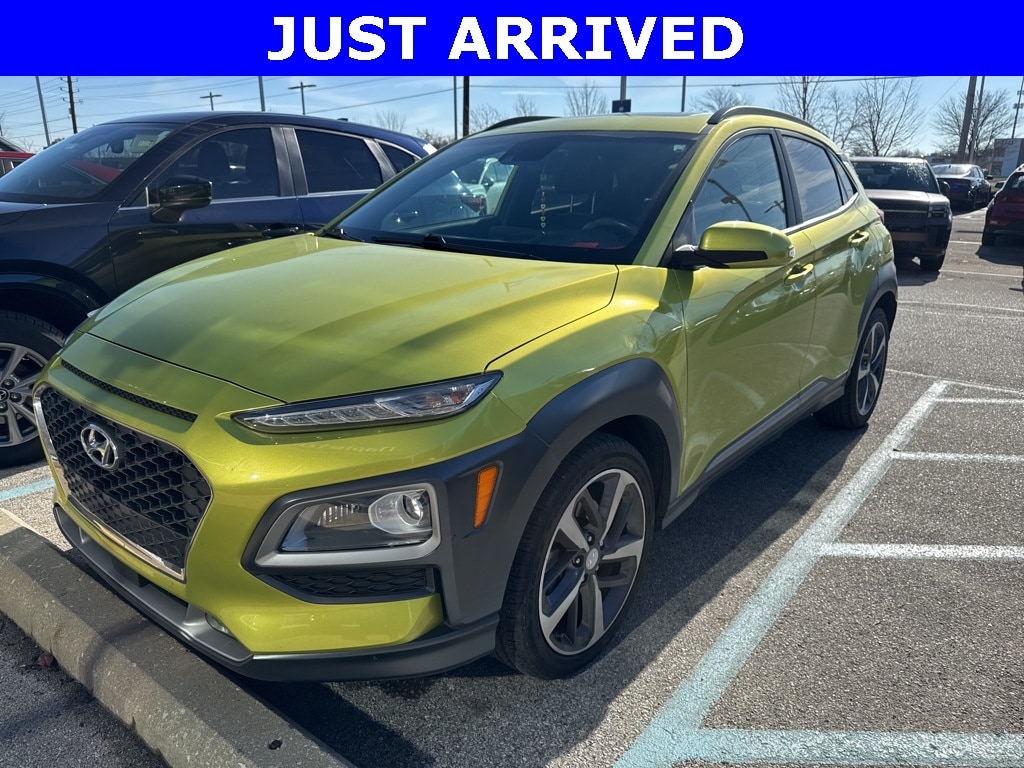 This Kona is well equipped with Tons of Options!, Kona Ultimate, 4D Sport Utility, I4, 7-Speed Automatic, AWD, Lime Twist, Black Leather, 18" Alloy wheels, 3.579 Axle Ratio, 4-Wheel Disc Brakes, 8 Speakers, ABS brakes, Air Conditioning, AM/FM radio: SiriusXM, Apple CarPlay & Android Auto, Auto High-beam Headlights, Auto-dimming Rear-View mirror, Automatic temperature control, Brake assist, Carpeted Floor Mats, Color Match Body Molding, Delay-off headlights, Driver door bin, Driver vanity mirror, Dual front impact airbags, Dual front side impact airbags, Electronic Stability Control, Emergency communication system, Exterior Parking Camera Rear, Four wheel independent suspension, Front anti-roll bar, Front Bucket Seats, Front Center Armrest, Front fog lights, Front reading lights, Fully automatic headlights, Garage door transmitter: HomeLink, Heads-Up Display, Heated door mirrors, Heated Front Bucket Seats, Heated front seats, Illuminated entry, Leather Seat Trim, Leather Shift Knob, Leather steering wheel, Low tire pressure warning, Navigation System, Occupant sensing airbag, Outside temperature display, Overhead airbag, Overhead console, Panic alarm, Passenger door bin, Passenger vanity mirror, Power door mirrors, Power driver seat, Power moonroof, Power steering, Power windows, Radio: AM/FM/MP3/HD Radio/SiriusXM Audio System, Rain sensing wipers, Rear anti-roll bar, Rear seat center armrest, Rear window defroster, Rear window wiper, Remote keyless entry, Roof rack: rails only, Security system, Speed control, Speed-sensing steering, Split folding rear seat, Spoiler, Steering wheel mounted audio controls, Tachometer, Telescoping steering wheel, Tilt steering wheel, Traction control, Trip computer, Turn signal indicator mirrors, Variably intermittent wipers, and Wheels: 18 x 7.5J Alloy.