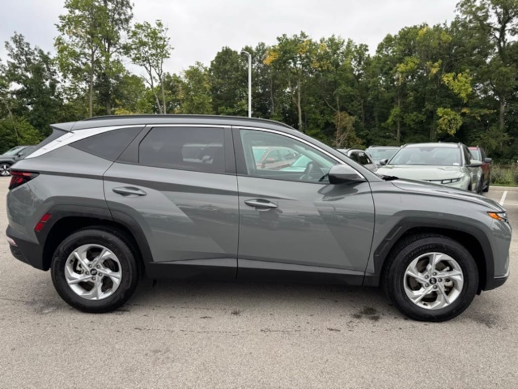 This Tucson is well equipped with AWD, Auto High-beam Headlights, Automatic temperature control, Exterior Parking Camera Rear, Front dual zone A/C, Power driver seat, Power Liftgate, Radio: AM/FM/HD Audio System, Steering wheel mounted audio controls, Wheels: 19" x 7.5J" Machine-Face Finish Alloy, 18" Alloy wheels, 3.648 Axle Ratio, 4-Wheel Disc Brakes, 6 Speakers, ABS brakes, Air Conditioning, AM/FM radio: SiriusXM, Apple CarPlay & Android Auto, Brake assist, Color Match Body Molding, Delay-off headlights, Driver door bin, Driver vanity mirror, Dual front impact airbags, Dual front side impact airbags, Electronic Stability Control, Emergency communication system: Blue Link Connected Car Service (3-year complimentary subscription), Four wheel independent suspension, Front anti-roll bar, Front Bucket Seats, Front Center Armrest, Front reading lights, Fully automatic headlights, Heated door mirrors, Heated Front Bucket Seats, Heated front seats, Illuminated entry, Low tire pressure warning, Occupant sensing airbag, Outside temperature display, Overhead airbag, Overhead console, Panic alarm, Passenger door bin, Passenger vanity mirror, Power door mirrors, Power steering, Power windows, Radio data system, Rear anti-roll bar, Rear seat center armrest, Rear side impact airbag, Rear window defroster, Rear window wiper, Remote keyless entry, Roof rack: rails only, Security system, Speed control, Split folding rear seat, Spoiler, Stain & Odor Resistant Cloth Seat Trim, Tachometer, Telescoping steering wheel, Tilt steering wheel, Traction control, Trip computer, Variably intermittent wipers, and Wheels: 17" x 7.0J" Alloy.