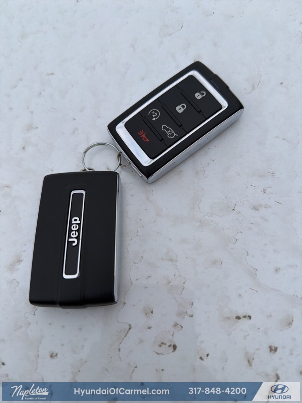 This Grand Cherokee L is well equipped with Luxury Tech Group II (2nd Row Manual Window Shades, Auto-Dimming Exterior Driver Mirror, Capri Leather Seats w/Perforated Inserts, Integrated Off-Road Camera, Intersection Collision Assist System, Memory Steering Column, ParkSense Front/Rear Park Assist w/Stop, Passive Entry - Front/Rear Doors, Liftgate, Power Tilt/Telescope Steering Column, Rain Sensitive Windshield Wipers, Rear Back Up Camera Washer, Rearview Autodim Digital Display Mirror, Surround View Camera System, Ventilated Front Seats, and Wireless Charging Pad), Quick Order Package 22E, Trailer Tow Package (DISC) (220 Amp Alternator, 7 & 4 Pin Wiring Harness, Automatic Headlamp Leveling System, Class IV Receiver Hitch, Heavy-Duty Engine Cooling, Rear Load Leveling Suspension, and Trailer Hitch Zoom), 10.1" Touchscreen Display, 18" Alloy wheels, 3.45 Rear Axle Ratio, 3rd row seats: split-bench, 4-Wheel Disc Brakes, 506 Watt Amplifier, 6 Speakers, 9 Amplified Speakers w/Subwoofer, ABS brakes, Air Conditioning, AM/FM radio: SiriusXM w/360L, Anti-whiplash front head restraints, Apple CarPlay, Apple CarPlay/Android Auto, Audio memory, Auto High-beam Headlights, Automatic temperature control, Brake assist, Bridgestone Brand Tires, Capri Leather Seats, Color Match Body Molding, Compass, Connected Travel & Traffic Services, Connectivity - US/Canada, Delay-off headlights, Disassociated Touchscreen Display, Driver door bin, Driver vanity mirror, Dual front impact airbags, Dual front side impact airbags, Dual-Pane Panoramic Sunroof, Electronic Stability Control, Emergency communication system, Four wheel independent suspension, Front anti-roll bar, Front Bucket Seats, Front Center Armrest w/Storage, Front dual zone A/C, Front fog lights, Front reading lights, Fully automatic headlights, Garage door transmitter, Google Android Auto, GPS Antenna Input, GPS Navigation, HD Radio, Heated door mirrors, Heated front seats, Heated rear seats, Heated steering wheel, Illuminated entry, Integrated Center Stack Radio, Integrated Voice Command w/Bluetooth, Interior Rear Facing Camera, Knee airbag, Leather steering wheel, Low tire pressure warning, Manual Fold Seatbacks, Memory seat, Normal Duty Suspension, Occupant sensing airbag, Outside temperature display, Overhead airbag, Overhead console, Panic alarm, ParkView Rear Back-Up Camera, Passenger door bin, Passenger vanity mirror, Power door mirrors, Power driver seat, Power Liftgate, Power passenger seat, Power steering, Power windows, Radio data system, Radio: Uconnect 5 Nav w/10.1" Display, Radio: Uconnect 5 w/8.4" Display, Rear air conditioning, Rear anti-roll bar, Rear reading lights, Rear window defroster, Rear window wiper, Reclining 3rd row seat, Remote keyless entry, Roof rack: rails only, Security system, SiriusXM Satellite Radio, SiriusXM w/360L, Speed control, Speed-Sensitive Wipers, Split folding rear seat, Spoiler, Steering wheel mounted audio controls, Tachometer, Telescoping steering wheel, Tilt steering wheel, Traction control, Trip computer, Turn signal indicator mirrors, USB Host Flip, Variably intermittent wipers, Voltmeter, Wheels: 18" x 8.0" Fully Painted Aluminum 2, and Wheels: 20" x 8.5" Polished/Painted Aluminum (DISC).