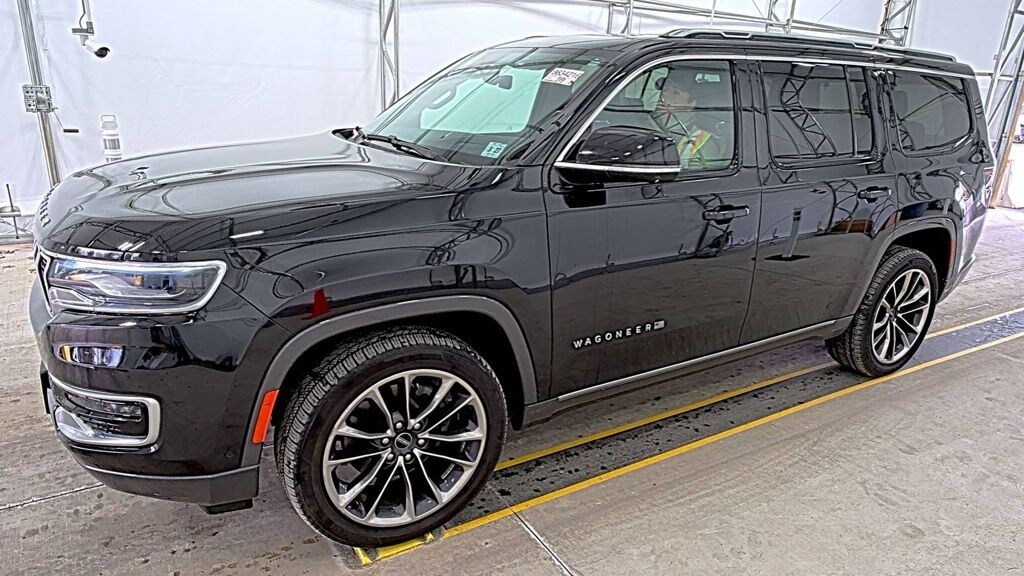 This Wagoneer is well equipped with Convenience Group I (2nd Row Manual Window Shades, Drowsy Driver Detection, Intersection Collision Assist System, P&P Park & Unpark Assist w/Stop System, Surround View Camera System, and Traffic Sign Recognition), Flexible Seating Group (7-Passenger Seating, Floor Console w/Cupholder, and Power Tip/Slide Recline 2nd Row Buckets), MOPAR Interior Protection Package (All-Season Floor Mats and Cargo Tray), Premium Group I (DISC) (19 Speaker McIntosh Audio System, 3 Panel Sunroof, Adjustable Roof Rail Crossbars, Cargo Cover, Luxury Front & Rear Floor Mats, Power Deployable Running Boards, and Reversible Carpet/Vinyl Cargo Mat), Quick Order Package 22N, 3rd row seats: bench, Auto-leveling suspension, Automatic temperature control, Compass, Delay-off headlights, Exterior Parking Camera Rear, Front dual zone A/C, Front fog lights, Garage door transmitter, Heads-Up Display, Heated front seats, Heated rear seats, Illuminated entry, Leather Trimmed Bucket Seats, Memory seat, Navigation System, Outside temperature display, Pedal memory, Power Liftgate, Radio: Uconnect 5 Nav w/10.1" Display, Rain sensing wipers, Rear air conditioning, Rear dual zone A/C, Reclining 3rd row seat, Speed-Sensitive Wipers, Steering wheel memory, Steering wheel mounted audio controls, Tachometer, Telescoping steering wheel, Ventilated front seats, Wheels: 22" x 9.0" Premium 3 Aluminum (DISC), 10 Speakers, 3.21 Rear Axle Ratio, 4-Wheel Disc Brakes, ABS brakes, Adjustable pedals, Air Conditioning, AM/FM radio: SiriusXM with 360L, Anti-whiplash front head restraints, Audio memory, Auto High-beam Headlights, Auto-dimming door mirrors, Auto-dimming Rear-View mirror, Brake assist, Color Match Body Molding, Driver door bin, Driver vanity mirror, Driver's Seat Mounted Armrest, Dual front impact airbags, Dual front side impact airbags, Electronic Stability Control, Four wheel independent suspension, Front anti-roll bar, Front Bucket Seats, Front Center Armrest w/Storage, Front Passenger Interactive Display, Front reading lights, Fully automatic headlights, Genuine wood console insert, Genuine wood dashboard insert, Genuine wood door panel insert, Heated door mirrors, Heated steering wheel, Knee airbag, Low tire pressure warning, Normal Duty Suspension, Occupant sensing airbag, Overhead airbag, Overhead console, Panic alarm, Passenger door bin, Passenger seat mounted armrest, Passenger vanity mirror, Power adjustable front head restraints, Powe