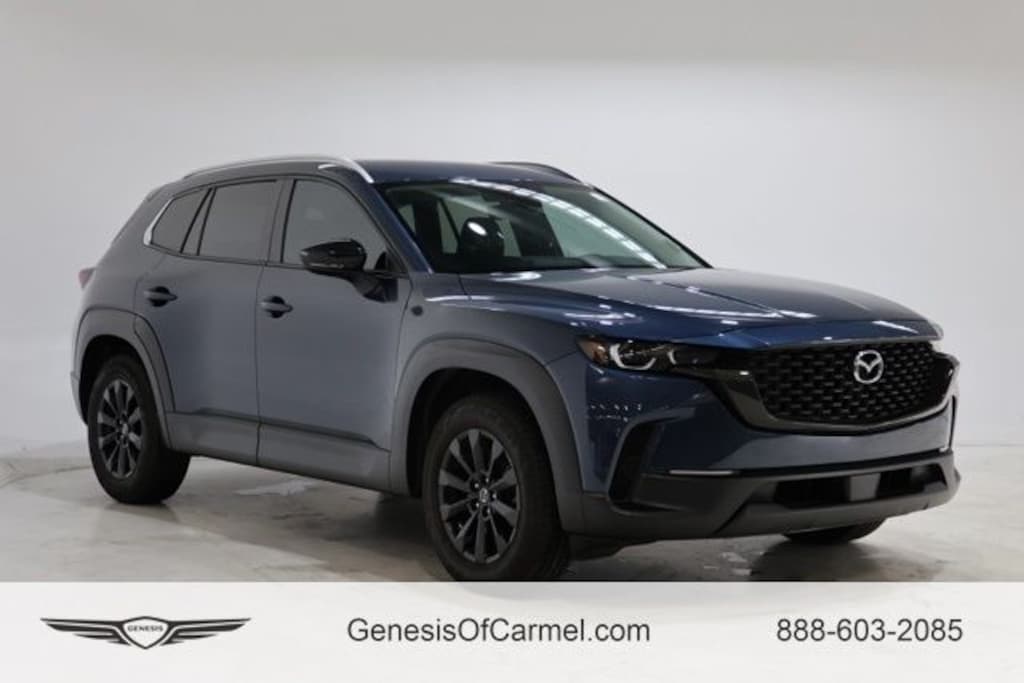 This Mazda CX-50 is well equipped with 4-Wheel Disc Brakes, 4.367 Axle Ratio, 8 Speakers, ABS brakes, Air Conditioning, Alloy wheels, AM/FM radio, AppLink/Apple CarPlay and Android Auto, Auto High-beam Headlights, Automatic temperature control, Brake assist, Bumpers: body-color, Delay-off headlights, Driver door bin, Driver vanity mirror, Dual front impact airbags, Dual front side impact airbags, Electronic Stability Control, Emergency communication system: MAZDA CONNECT, Exterior Parking Camera Rear, Front anti-roll bar, Front Bucket Seats, Front Center Armrest, Front dual zone A/C, Front reading lights, Front wheel independent suspension, Fully automatic headlights, Half Leatherette Seat Trim, Heated door mirrors, Heated Front Bucket Seats, Heated front seats, Illuminated entry, Knee airbag, Leather Shift Knob, Leather steering wheel, Low tire pressure warning, Occupant sensing airbag, Outside temperature display, Overhead airbag, Overhead console, Panic alarm, Passenger door bin, Passenger vanity mirror, Power door mirrors, Power driver seat, Power Liftgate, Power steering, Power windows, Radio data system, Radio: AM/FM/HD Audio System, Rain sensing wipers, Rear seat center armrest, Rear window defroster, Rear window wiper, Remote keyless entry, Speed control, Speed-sensing steering, Split folding rear seat, Spoiler, Steering wheel mounted audio controls, Tachometer, Telescoping steering wheel, Tilt steering wheel, Traction control, Trip computer, Turn signal indicator mirrors, Variably intermittent wipers, and Wheels: 17" x 7J Aluminum Alloy.