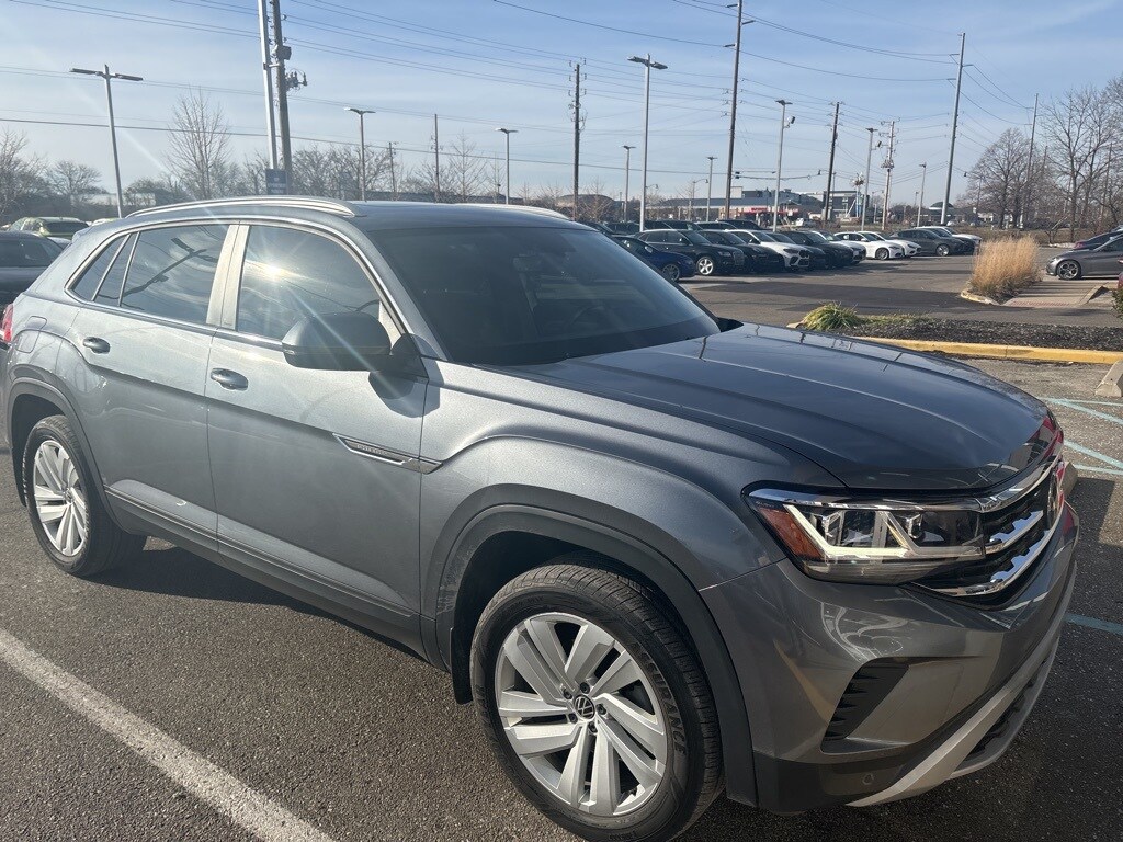 This Atlas Cross Sport is well equipped with Wheels: 20" x 8J 5-Spoke Silver Painted Alloy, 3.60 Axle Ratio, 4-Wheel Disc Brakes, 6 Speakers, ABS brakes, Air Conditioning, AM/FM radio: SiriusXM with 360L, Auto-dimming Rear-View mirror, Automatic temperature control, Brake assist, Color Match Body Molding, Compass, Delay-off headlights, Driver door bin, Driver vanity mirror, Dual front impact airbags, Dual front side impact airbags, Electronic Stability Control, Emergency communication system, Exterior Parking Camera Rear, Four wheel independent suspension, Front anti-roll bar, Front Bucket Seats, Front Center Armrest, Front dual zone A/C, Front fog lights, Front reading lights, Fully automatic headlights, Heated Comfort Front Bucket Seats, Heated door mirrors, Heated front seats, Illuminated entry, Leather Shift Knob, Low tire pressure warning, Occupant sensing airbag, Outside temperature display, Overhead airbag, Overhead console, Panic alarm, Passenger door bin, Passenger vanity mirror, Perforated V-Tex Leatherette Seating Surfaces, Power door mirrors, Power driver seat, Power Liftgate, Power steering, Power windows, Radio data system, Radio: MIB3 Composition Media w/8" Touchscreen, Rain sensing wipers, Rear anti-roll bar, Rear reading lights, Rear seat center armrest, Rear window defroster, Rear window wiper, Remote keyless entry, Roof rack: rails only, Security system, Speed control, Speed-sensing steering, Split folding rear seat, Spoiler, Standard Suspension, Steering wheel mounted audio controls, Tachometer, Telescoping steering wheel, Tilt steering wheel, Traction control, Trip computer, Turn signal indicator mirrors, and Variably intermittent wipers.